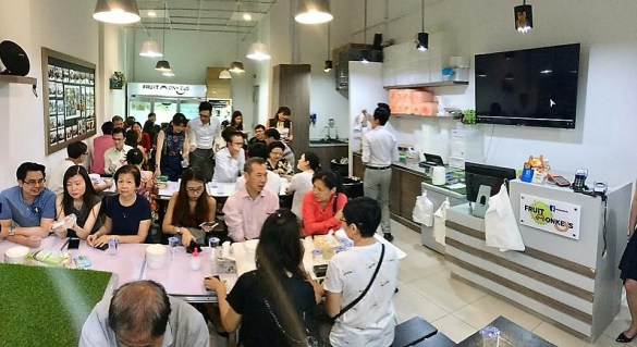after dinner, we rested a while & went to fruit monkey for durian tasting, courtesy of UOB. 🙂