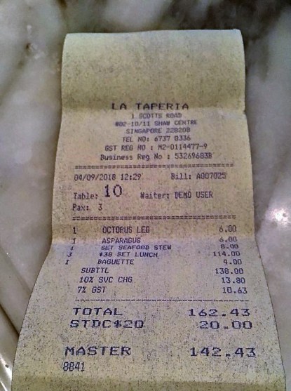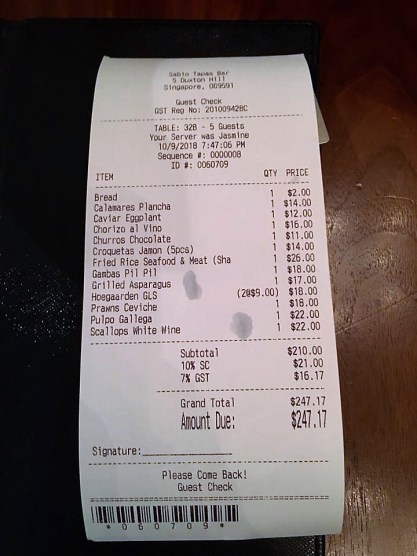 dinner was S$321 for 6pax. we had S$300 chope voucher which we paid S$150. so total was S$171nett for 6pax include $55 wine the best deal la