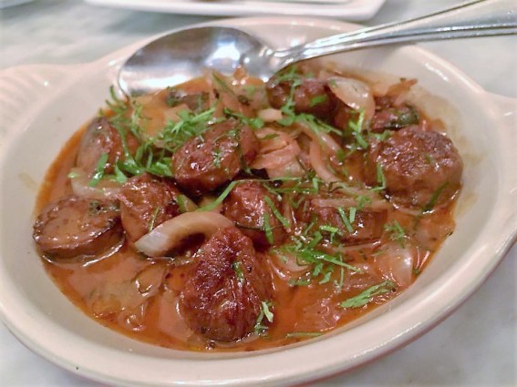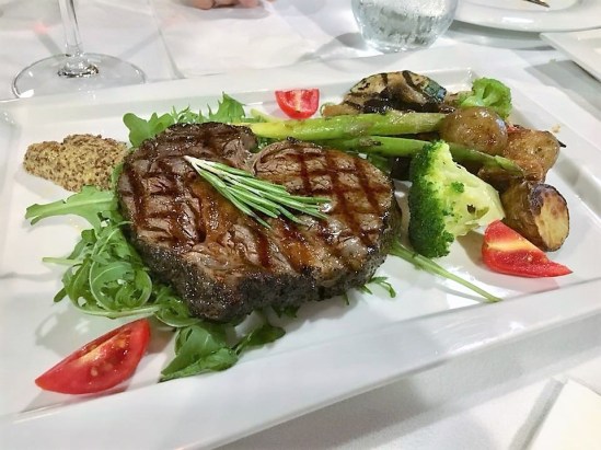 the chargrilled ribeye steak was good tender meat, though not served tagliata as stated in the menu.