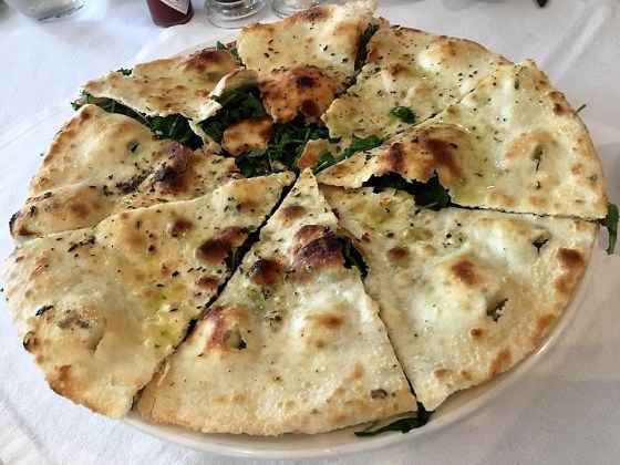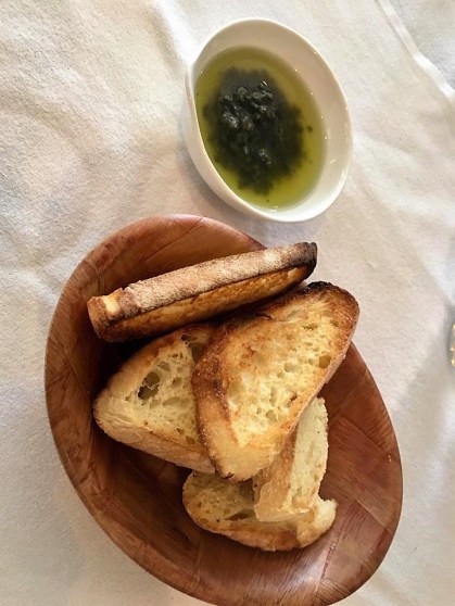 the complimentary garlic bread came with a tasty pesto dip – extra virgin olive oil, basil, baby spinach, pine nuts. very tasty.