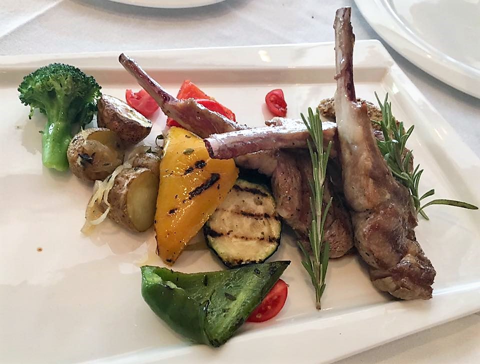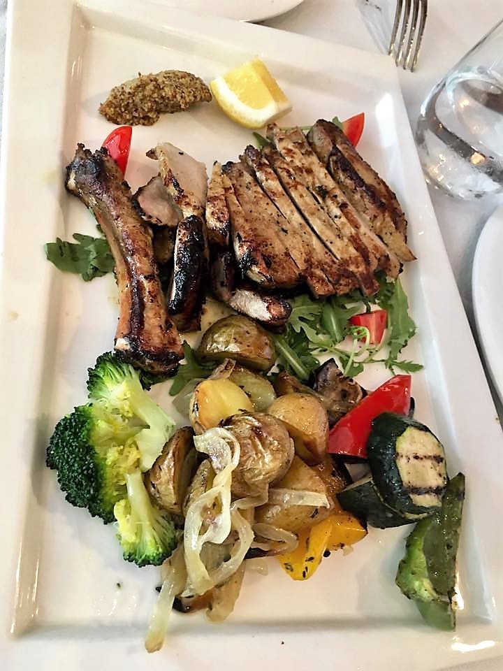 3 very meaty lamb chops, with excellent sides of grilled veg & potatoes. very tasty & flavourful * excellent texture.