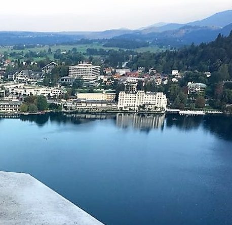 bled castle perch on the hill directly across lake bled from grand hotel toplice.