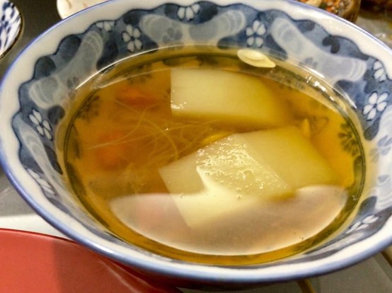 before dinner, J served some yam cake she made, super nice! especially with the very spicy chilli. i packet some home for wife and children. 🙂