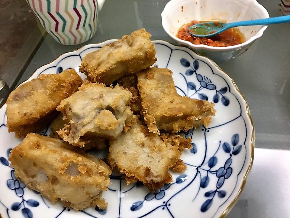 before dinner, J served some yam cake she made, super nice! especially with the very spicy chilli. i packet some home for wife and children. 🙂