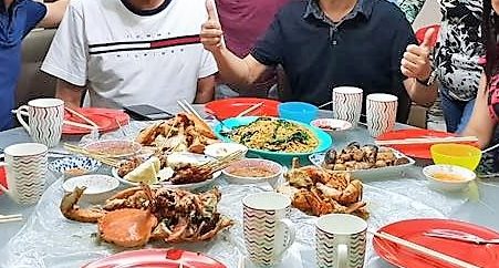 he ordered & collected 7 crabs from “old mattar road”, now called mattar road seafood. 🙂