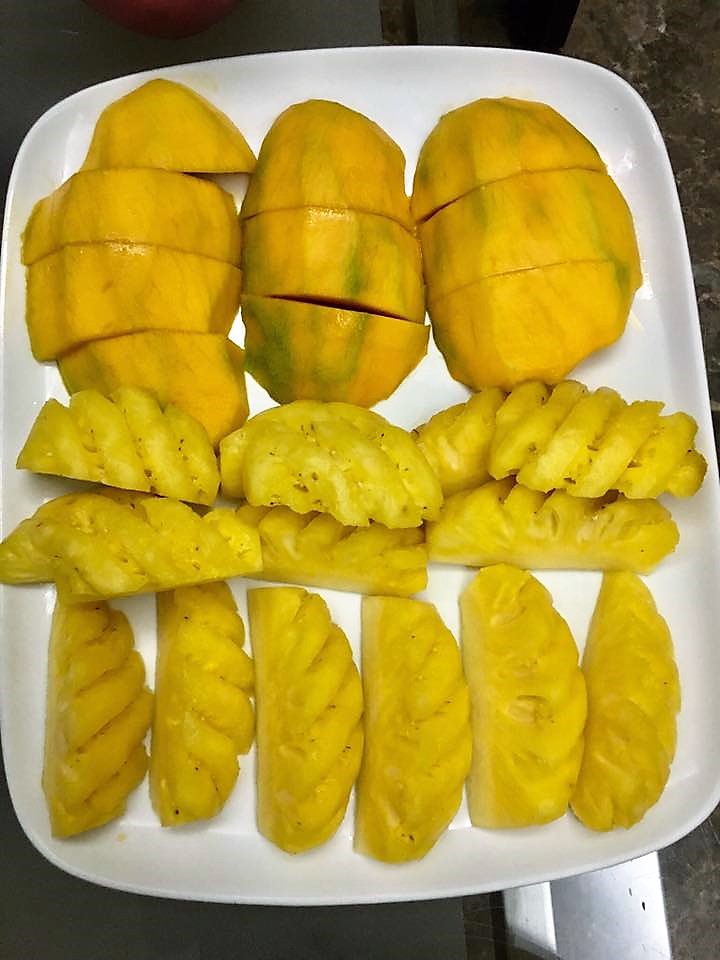 WT brught very sweet cut pineapples, and WM served some fragrant mangoes as well.