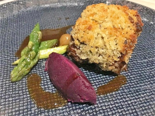 the truffle mushroom veloute was tasty, intense, and nicely flavoured with the truffle. very nice. the onsen egg gave it a silky texture.