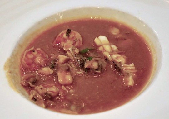 it was a good soup, perhaps more robust & less fine c/w the truffle mushroom veloute. the prawns & squid were overcooked, so that part less good.