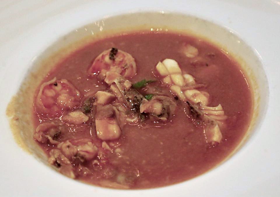 the seafood soup came with loads of ingredients, with a tomato shellfish base.