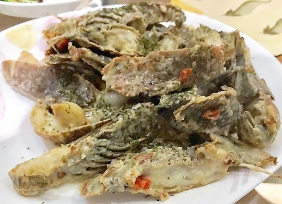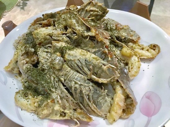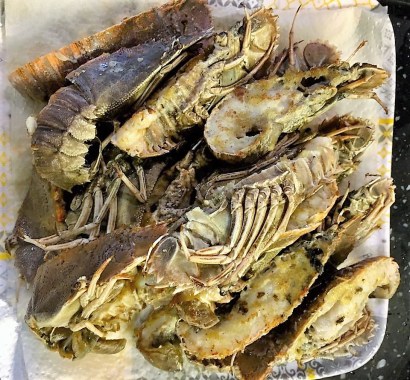 coated 1/2crayfish with 1 tbsp fish sauce, 1 tbsp dijorn mustard, 2 tbsp cornflour, 1 egg yoke, white pepper.