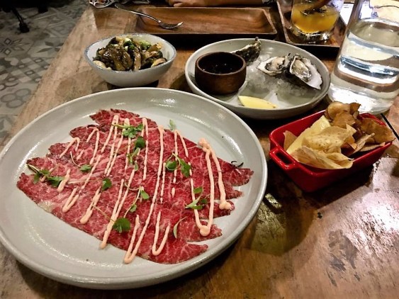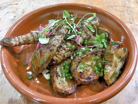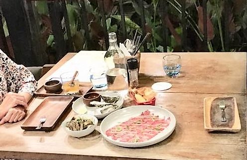 6 chorizo prawnswife served sashimi from kuriya, and made sushi rice for donburi & cooked the mirin steak..aunty bes made very nice charred brussel sprouts.