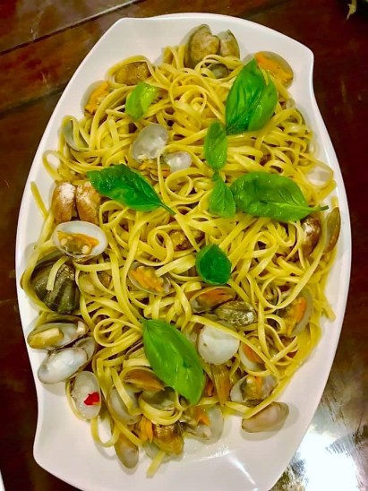 i had to go sheng shiong to buy lala for vongole linguine so got home 4pm -ish. even with the best planning & scheduling, still tight to get all dishes ready by 7pm.