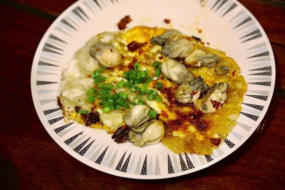 and i made orh lua – oyster omelette. it was hawker standard? almost la.. still cannot quite compare. oyster and chilli was good, the crispy sweet potato flour quite ok.