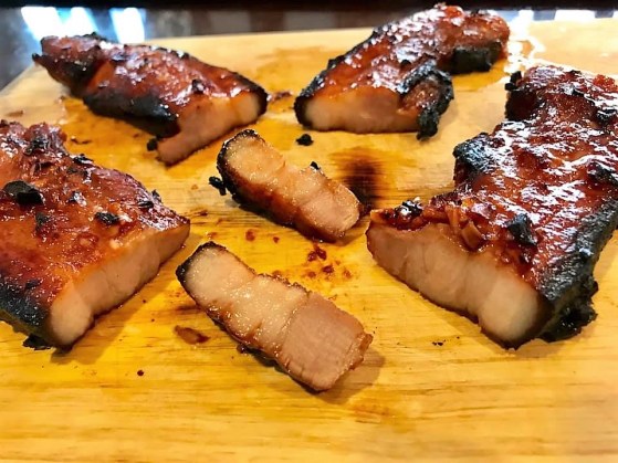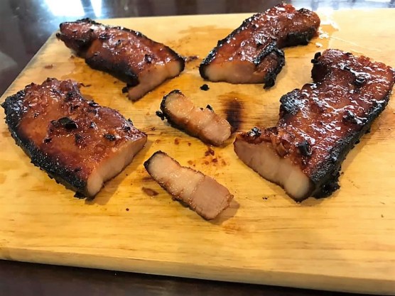 i use cold slow cooker on low heat method, about 6hrs. i just based on estimation “agaklogy”, but can also use a meat thermometer set at 90degC on the belly pork.