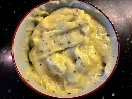 - add 1tbsp gourmet butter, 1 tbsp olive oil, 3 cloves chopped garlic, 1/3tsp salt and black pepper