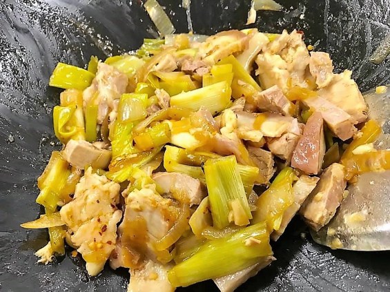 fried rice i could do on the spot. 回锅肉 doublecooked pork i cooked the belly pork first and also the leeks and onions first as leek took some time to cook. then i fried with leeks and onions on the spot.