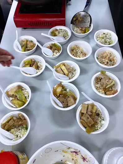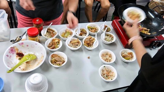 so there were many ingredients/boxes i have to bring – like cooked rice, minced pork, salted fish, egg white, chopped garlic, oil chopped scallions and crispy chilli for garnishing the fried rice, mala chilli for frying the 回锅肉 doublecooked pork etc.