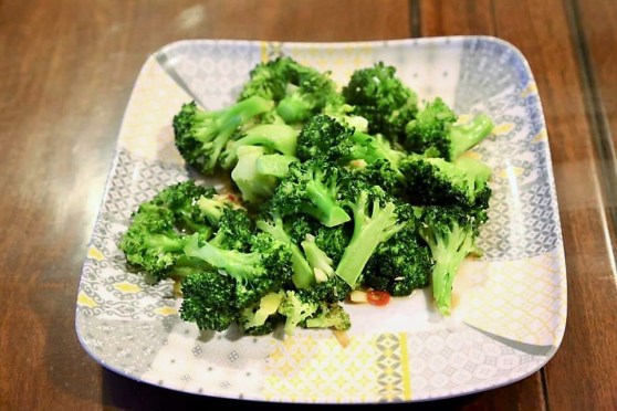 i started by explaining that i fried the chopped garlic and salted fish together as i didn’t want to burn either and i happened to have broccoli stems which i cut into small pieces to give texture to the fried rice.