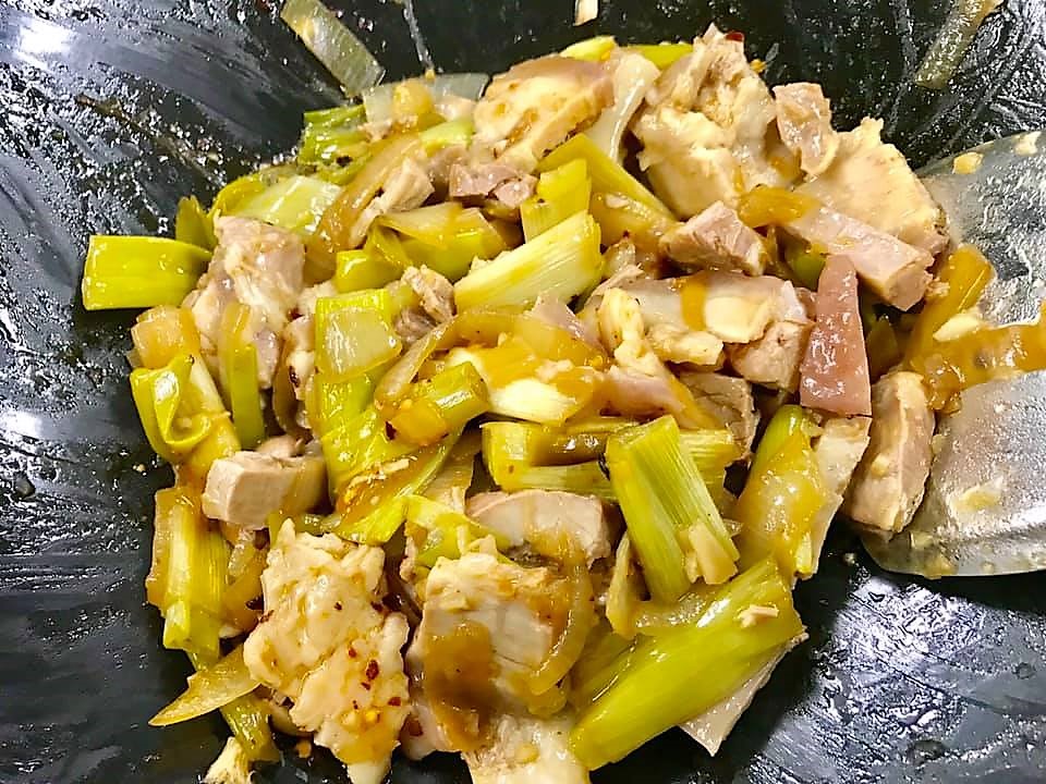 fried rice i could do on the spot. 回锅肉 doublecooked pork i cooked the belly pork first and also the leeks and onions first as leek took some time to cook. then i fried with leeks and onions on the spot.