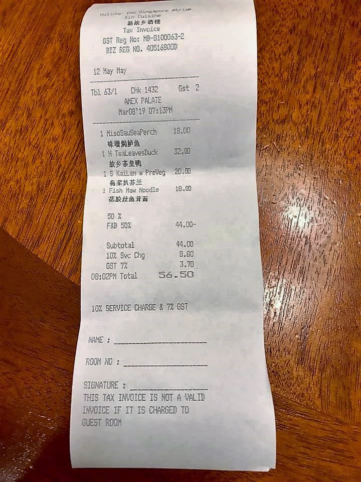 2pax dinner with 1/2 roast duck and such great dishes came to S$56nett after amex love dining discounts.