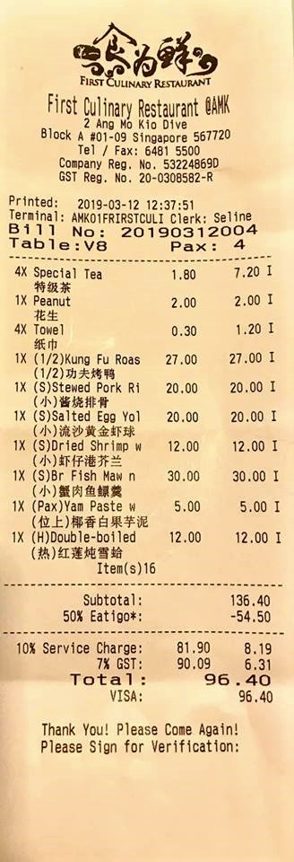 my RI bro LCM bought 4pax lunch today at first culinary 食为鲜at amk ave 5 on 12.3.2019. ^^