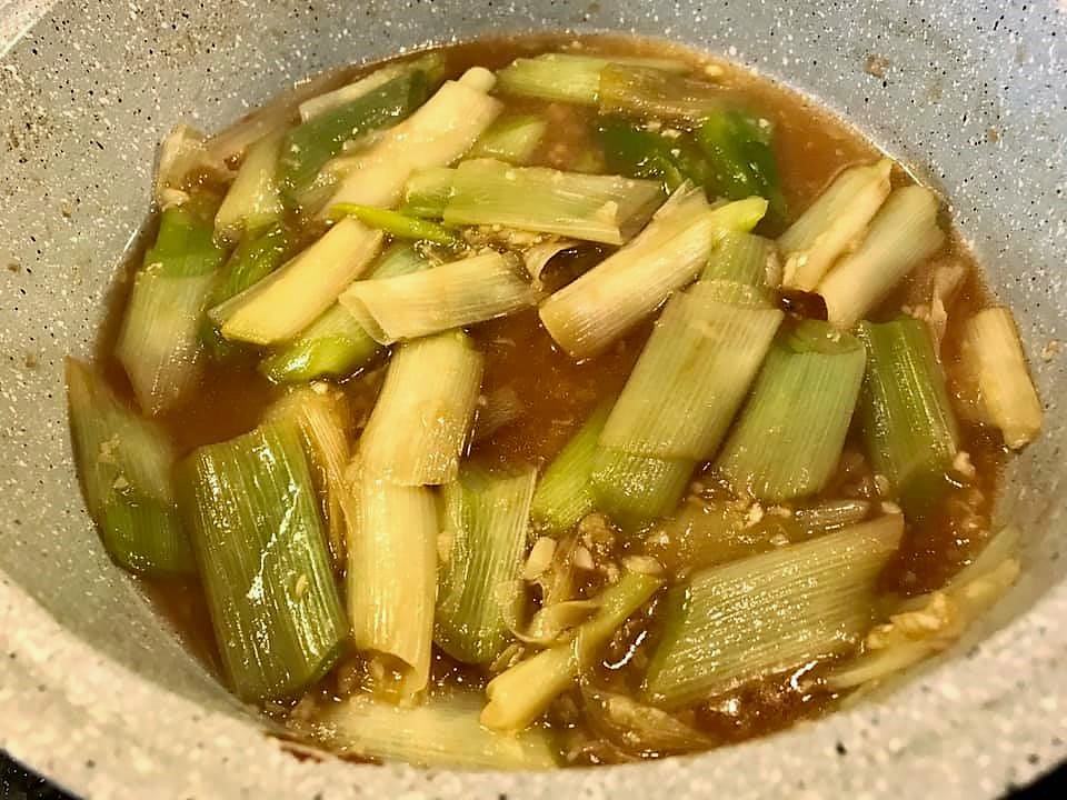 for the sauce i fried leek with oyster sauce and added intense chicken stock.