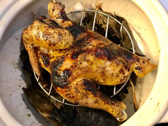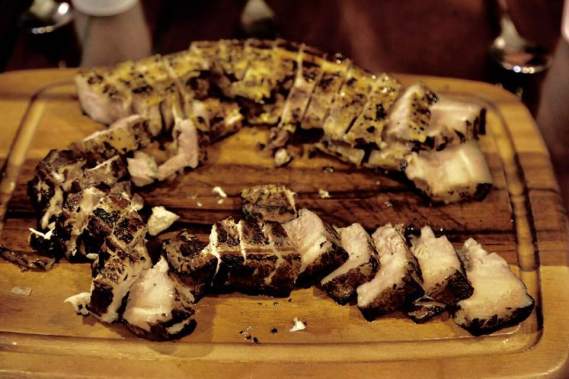 the mustard belly pork just boiled 1.5hrs then seasoned with mustard, slat & pepper and flamed.