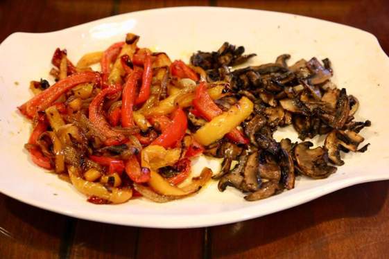 grilled peppers and portobello was pangrilled with just added seasalt, then added a bit extra virgin olive oil and a dash of balsamic and honey.