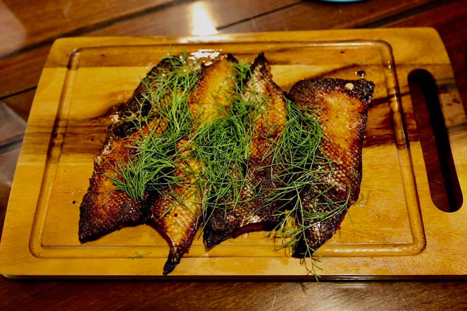 teriyaki miso salmon belly a perennial favourite. wonderful colour, texture, taste. great combination of miso, ginger, garlc, light soy sauce and perfectly grilled 15mins in 250degC oven.