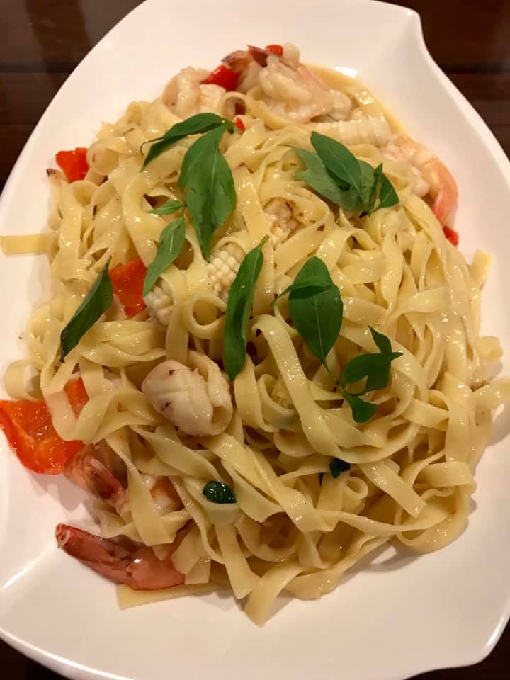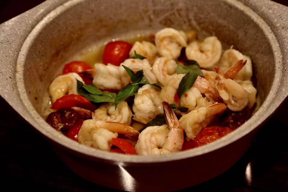 made RI bros 12pax 12-course (8 tapas, 3 pasta, tofu cheesecake) dinner this evening on 12.8.2019.^^