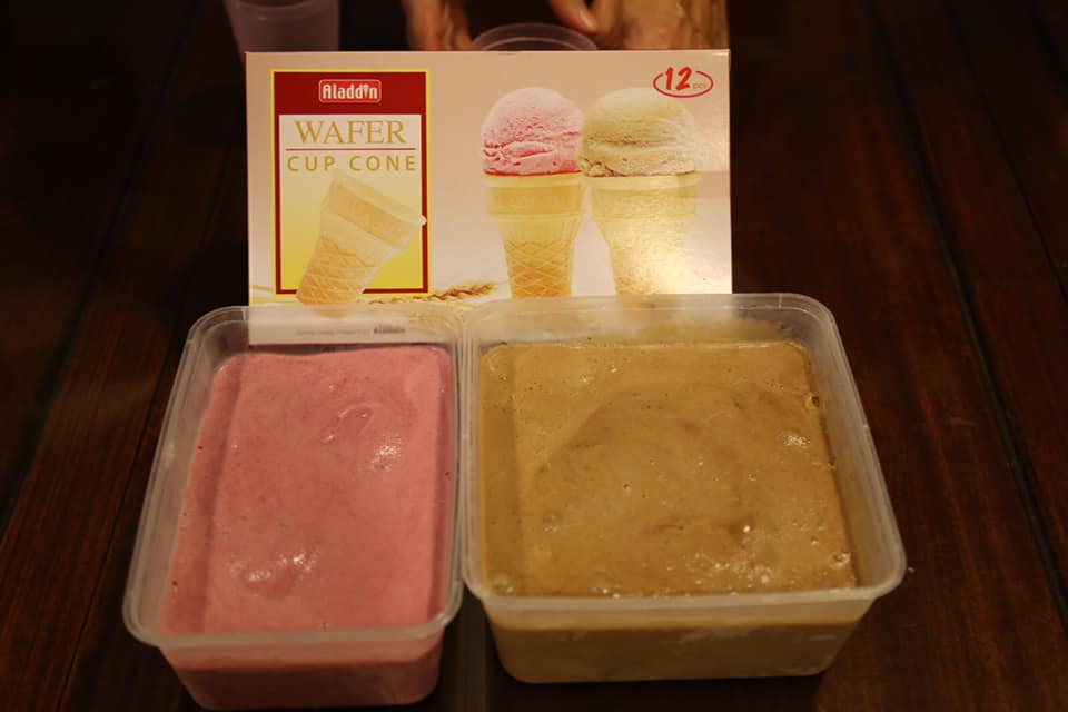 SCG brought 2 tubs of ice cream made by wife and ice cream cones. we finished all as well.^^