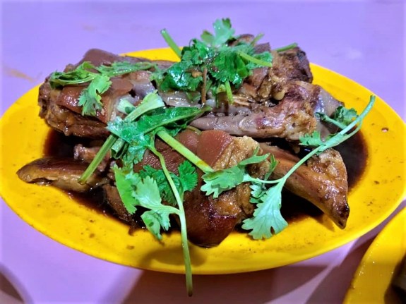 the mustard belly pork just boiled 1.5hrs then seasoned with mustard, slat & pepper and flamed.