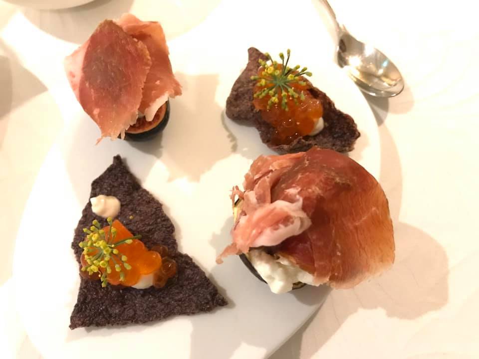 amuse bouche Published March 18, 2020 at 960 × 720 in Wife arranged best 6-course Degustation Dinner at Buona Terra on 16Oct2019 ← Previous Next → amuse bouche2 – parma ham on fig & another with ikura