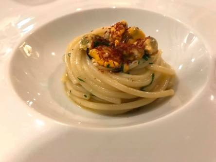 spaghetti with small clams Published March 18, 2020 at 960 × 720 in Wife arranged best 6-course Degustation Dinner at Buona Terra on 16Oct2019 ← Previous 4th course=spaghetti with small clams
