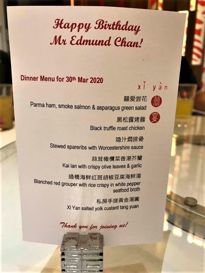 birthday set menu Published April 8, 2020 at 720 × 960 in Delicious Sumptuous 6pax Birthday Dinner for WM @ Xiyan on 30Mar2020 Next →