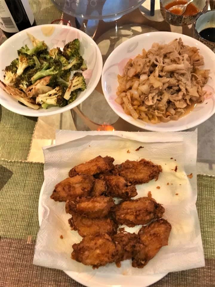 3 dishes-fried chicekn wings, pork shobayaki, broccoli Published April 22, 2020 at 720 × 960 in Recipe = Iberico Pork Shobayaki on 21Apr2020 ← Previous Next → 3 dishes = pork shobayaki, pork shobayaki & broccoli