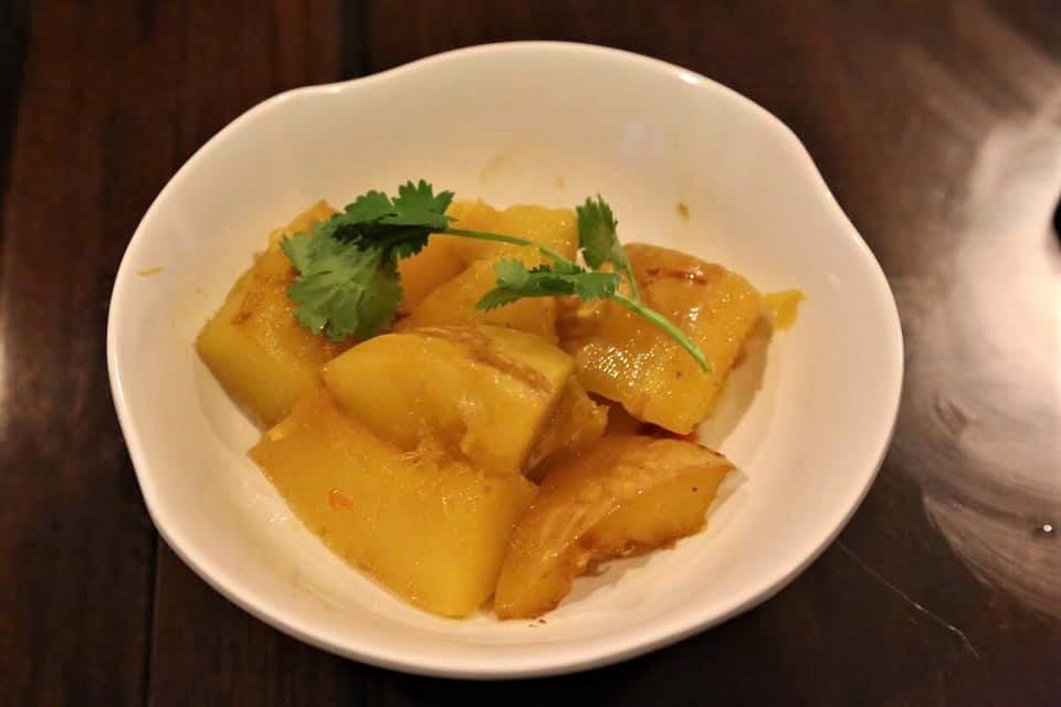japanese pumpkin dish Published August 29, 2020 at 960 × 640 in Superb All Japanese 7-dishes Dinner for Meta Bros on 7Jul2020 ← Previous Next → kabocha no nimono (simmered pumpkin)