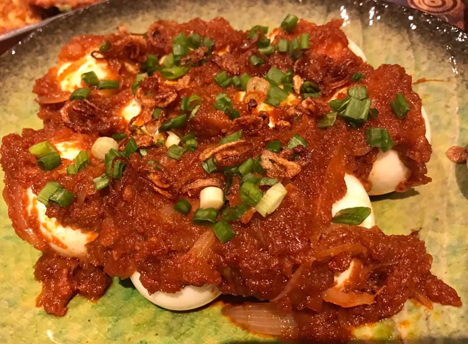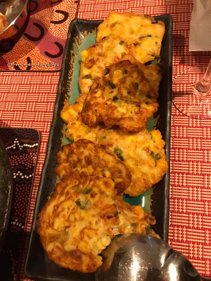 , corn fritters, aunty bes made sambal egg (sambal ![]()