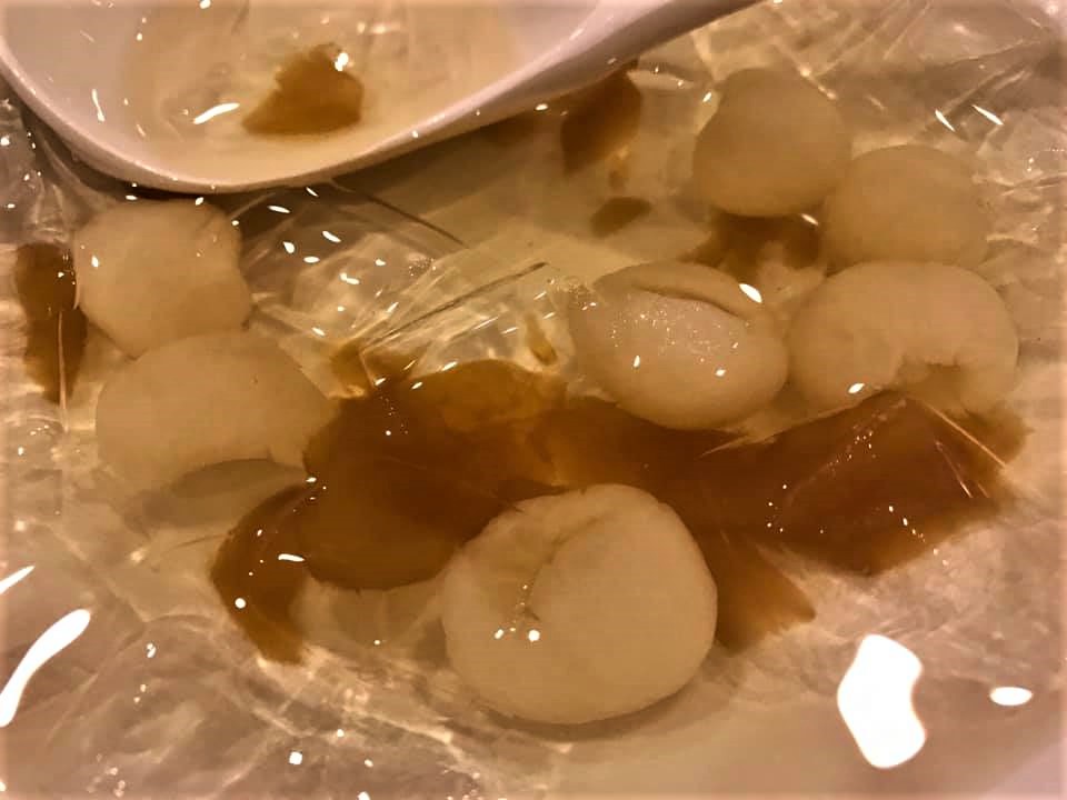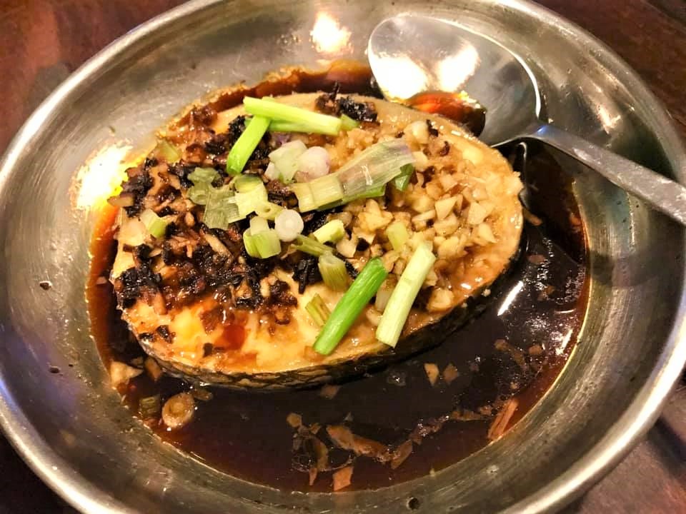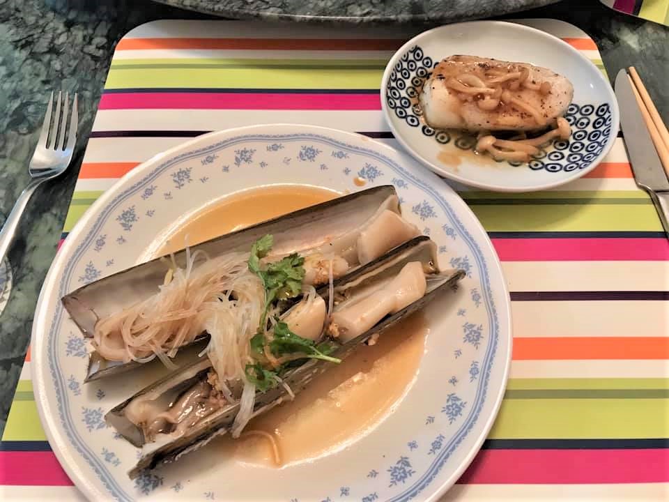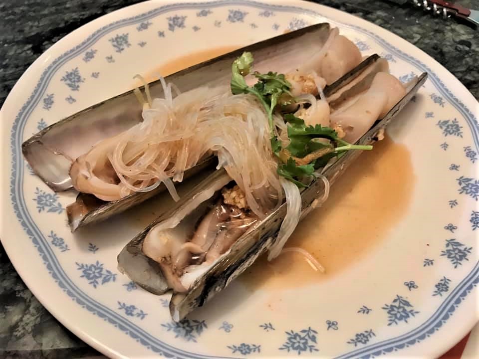 first was the razor clams. huge succulent razor clams, done just right, over a bed of tanhoon and lovely garlic soy sauce. excellent!