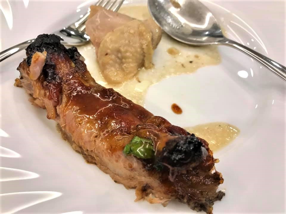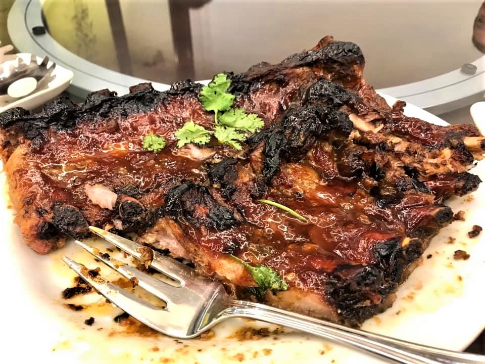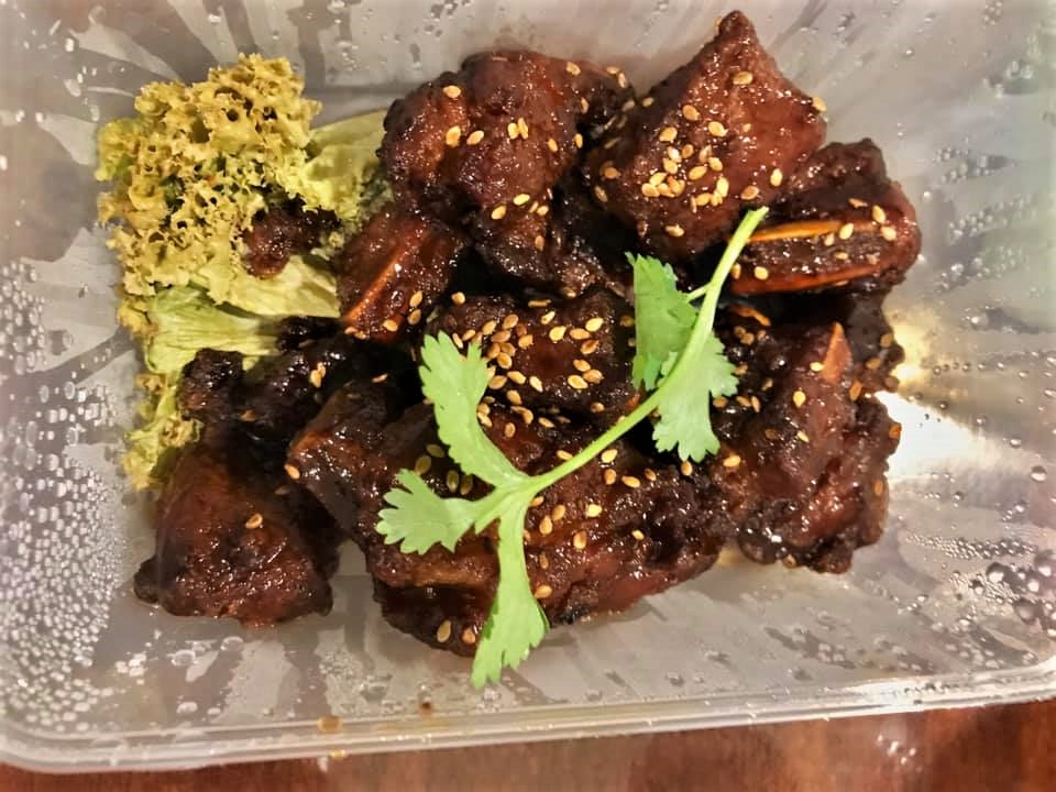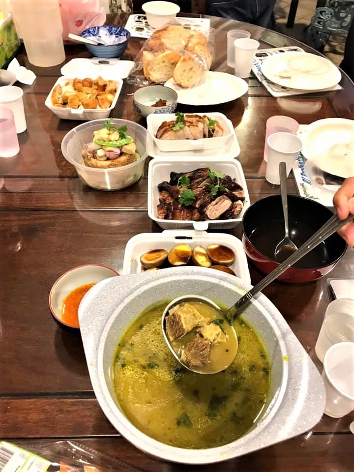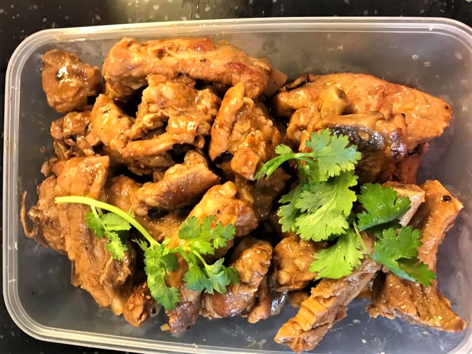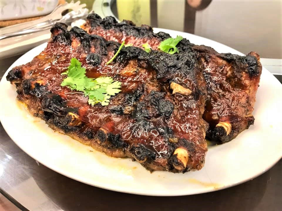 their helper irene made excellent oven roasted pork ribs and bittergourd fish head ..
