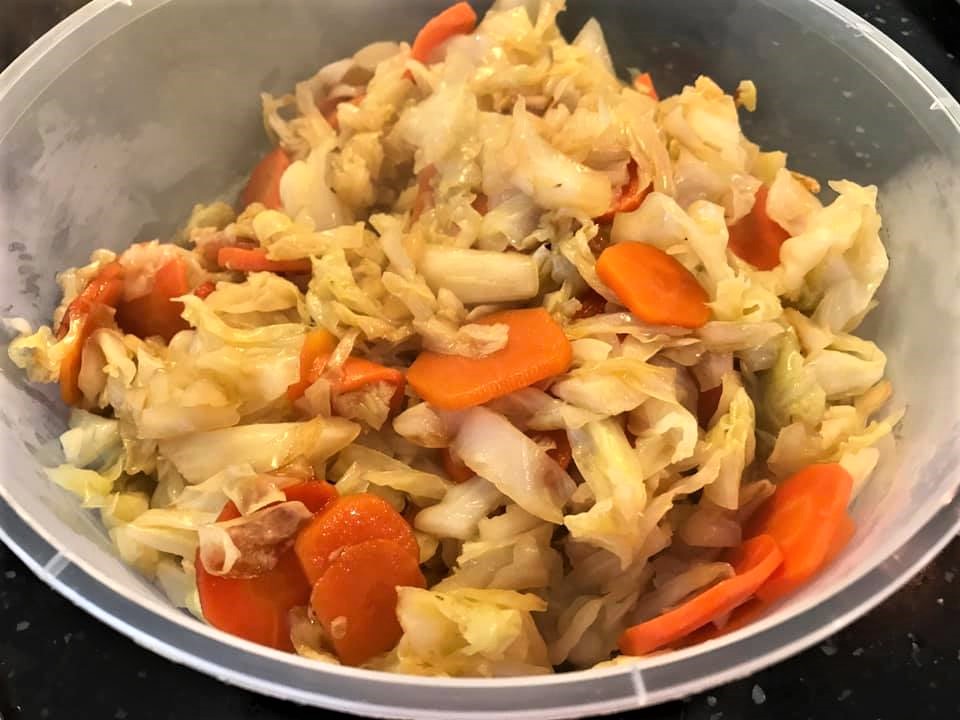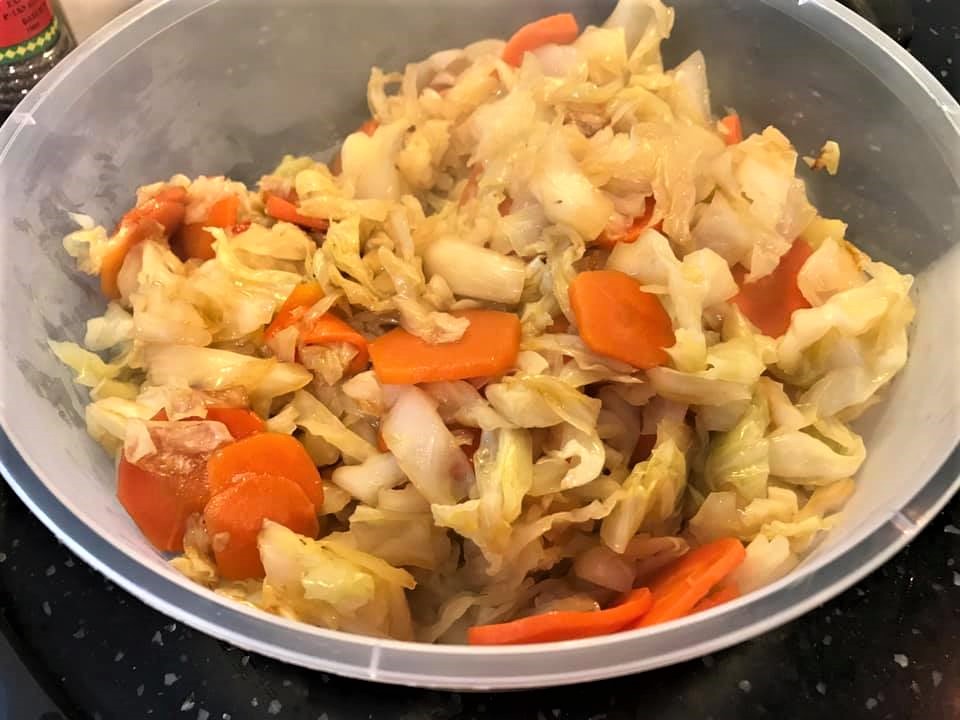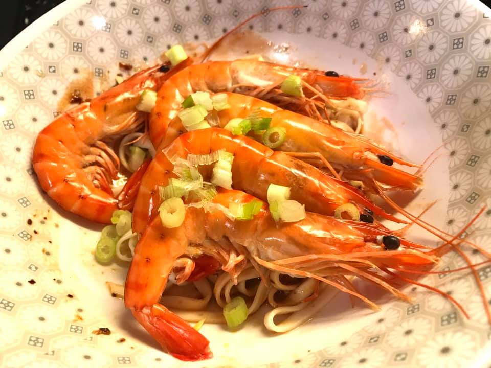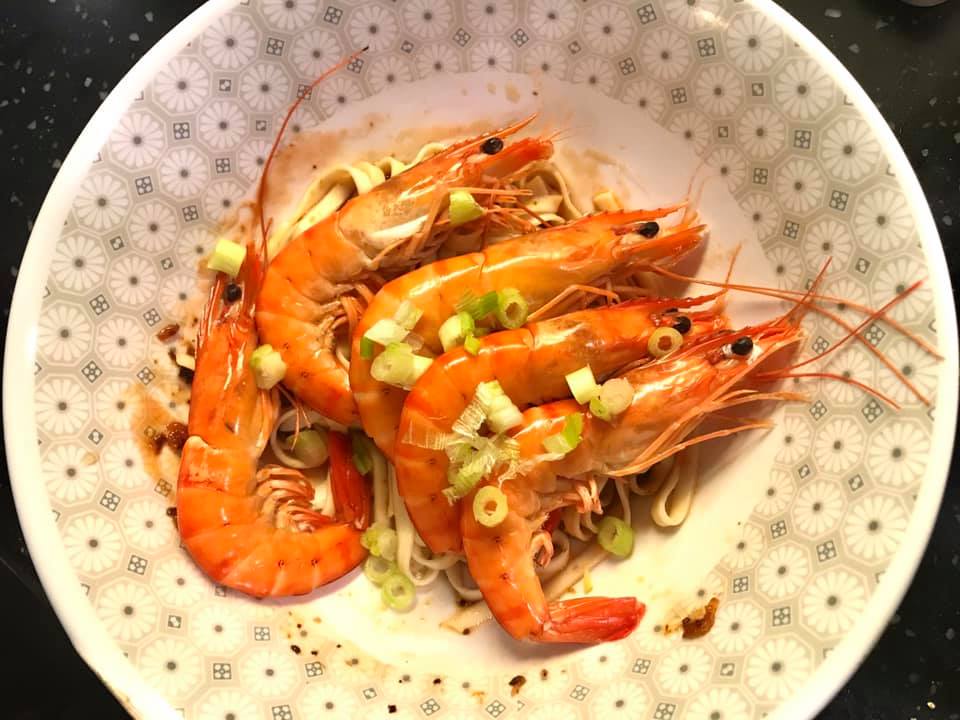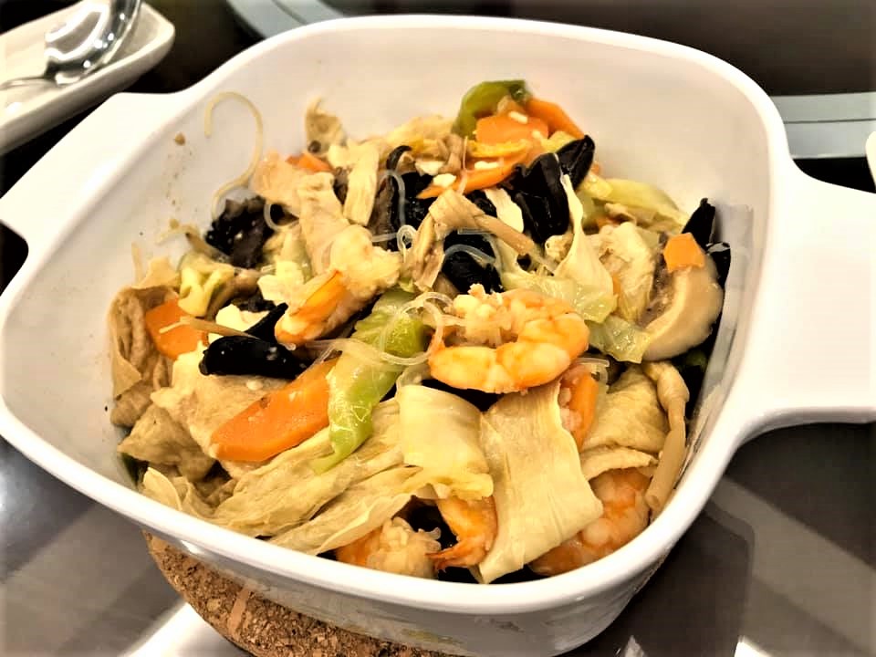 plus 2 nice vegetable dishes – prawn chap chye and prawn asparagus.