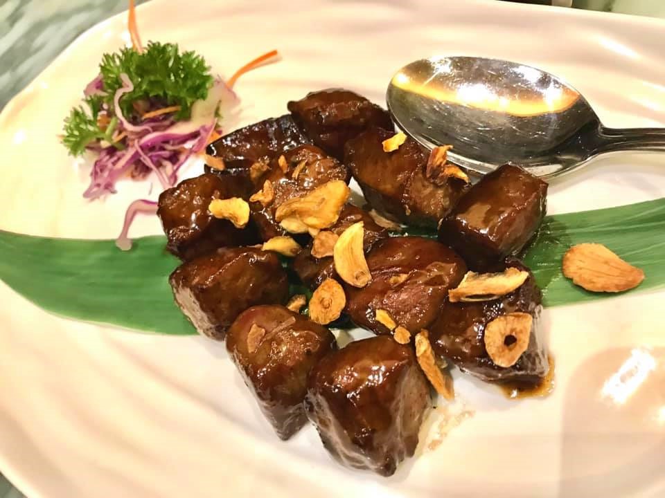 beef cubes in foie gras sauce was excellent, & truffle beancurd very good.