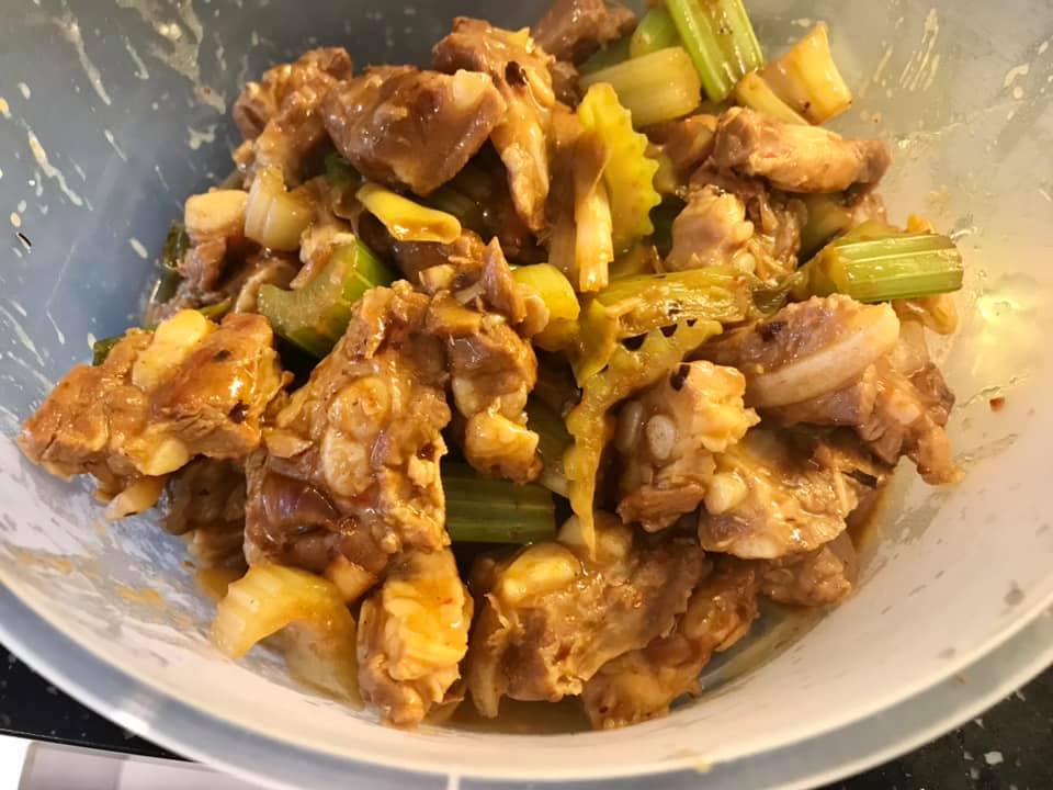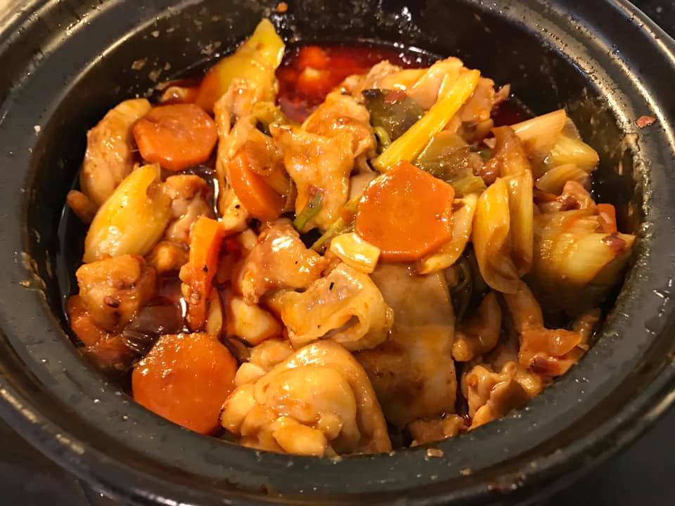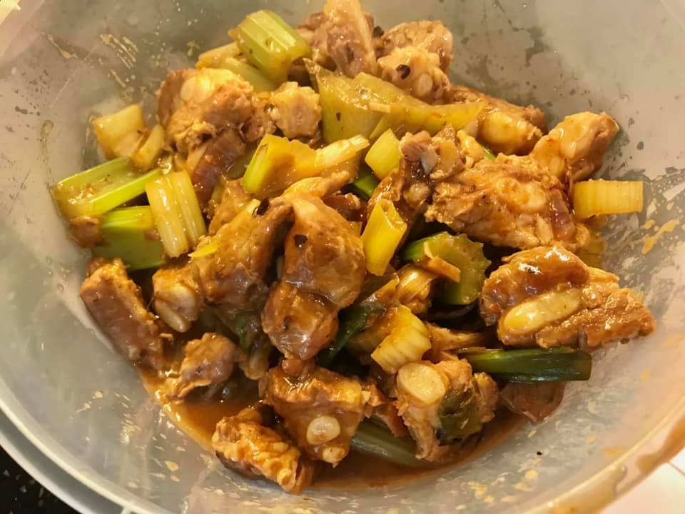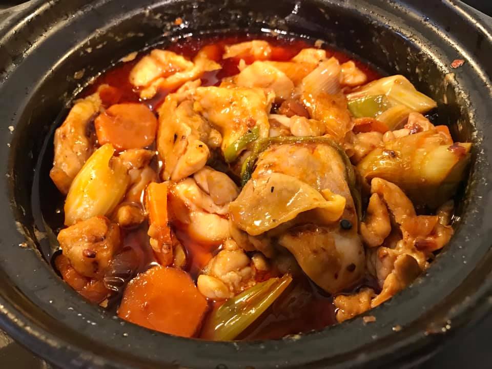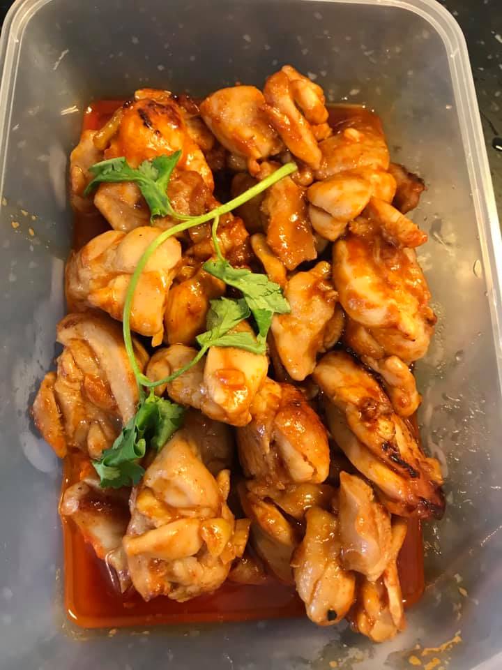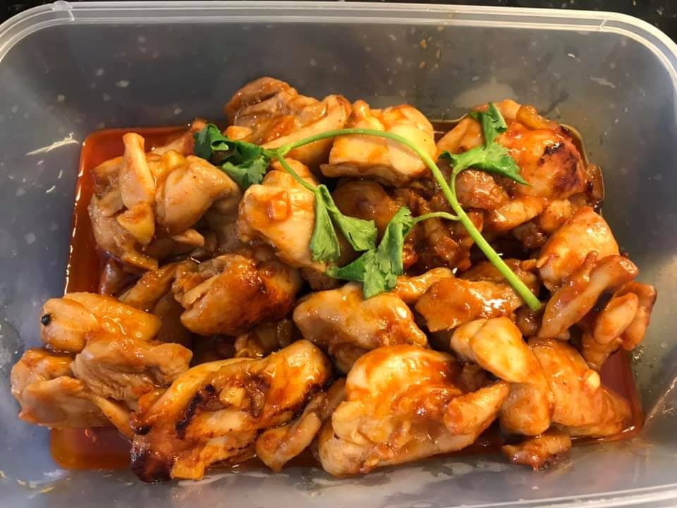the Korean spicy chicken, I just marinate 600g boneless chicken thighs with 1tbsp oysters sauce, 1tsp sesame oil and 2tbsp gochujang. set aside for 1 hr. browned 3 cloves chopped garlic in 1 tbsp oil, add chicken and fried for 6mins. add 60ml chicken stock and reduce. total 10mins.