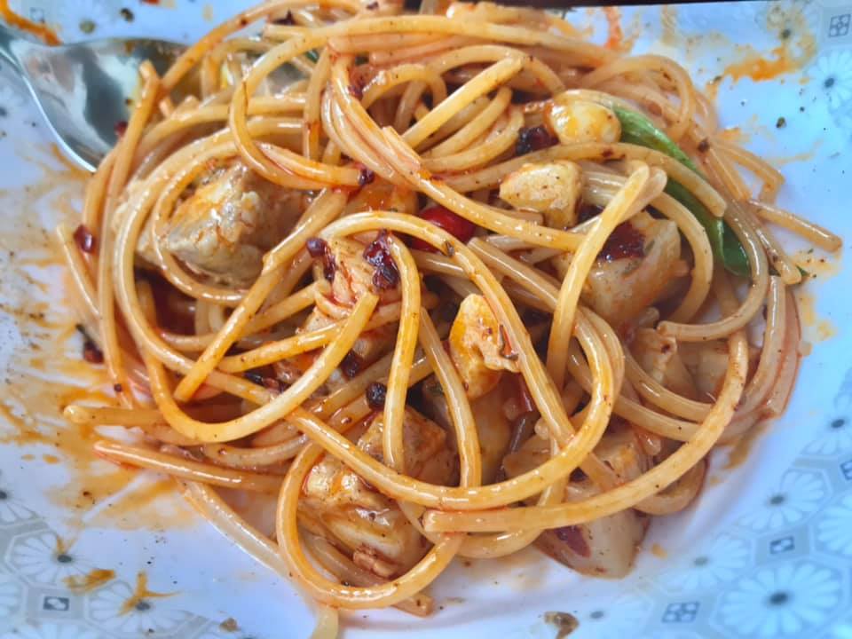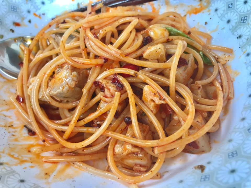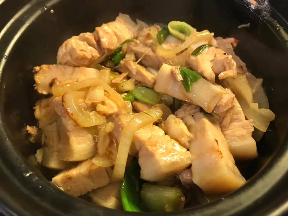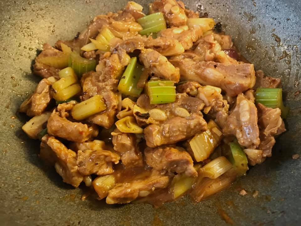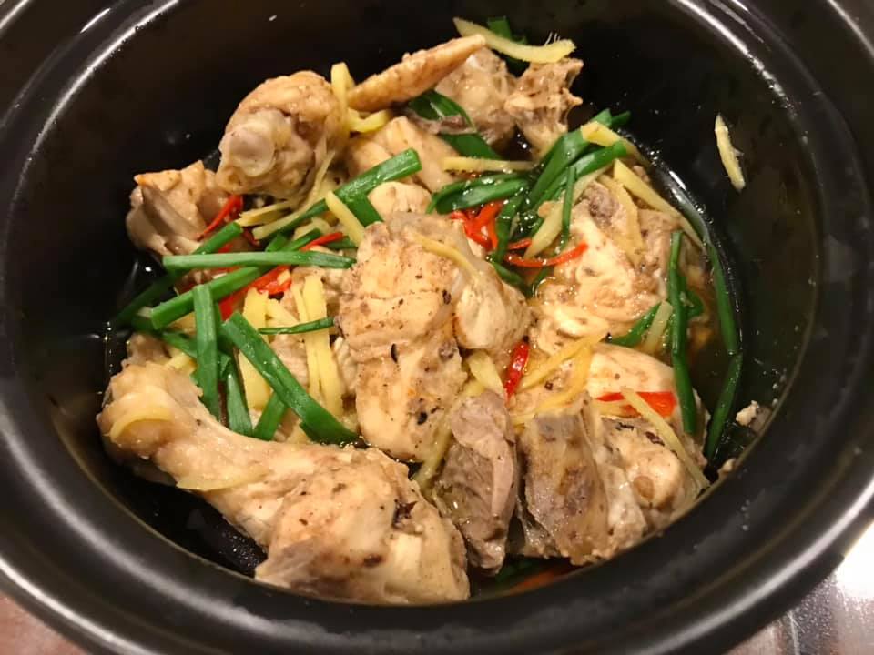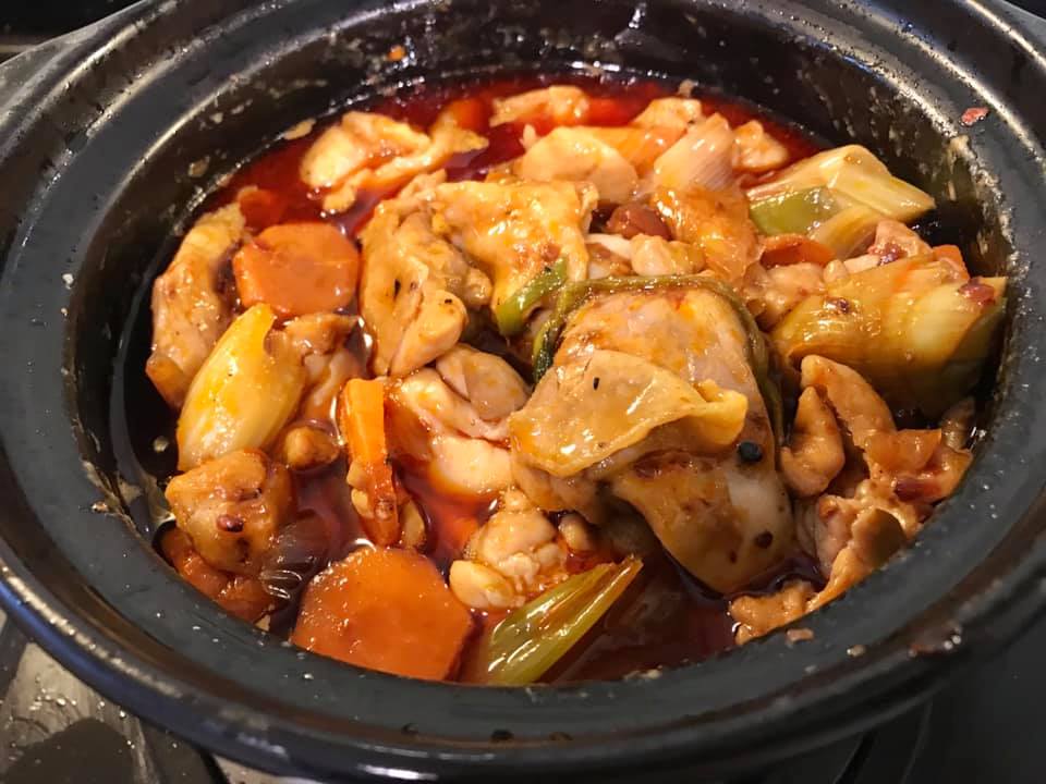 the Korean spicy chicken, I just marinate 600g boneless chicken thighs with 1tbsp oysters sauce, 1tsp sesame oil and 2tbsp gochujang. set aside for 1 hr. browned 3 cloves chopped garlic in 1 tbsp oil, add chicken and fried for 6mins. add 60ml chicken stock and reduce. total 10mins.
