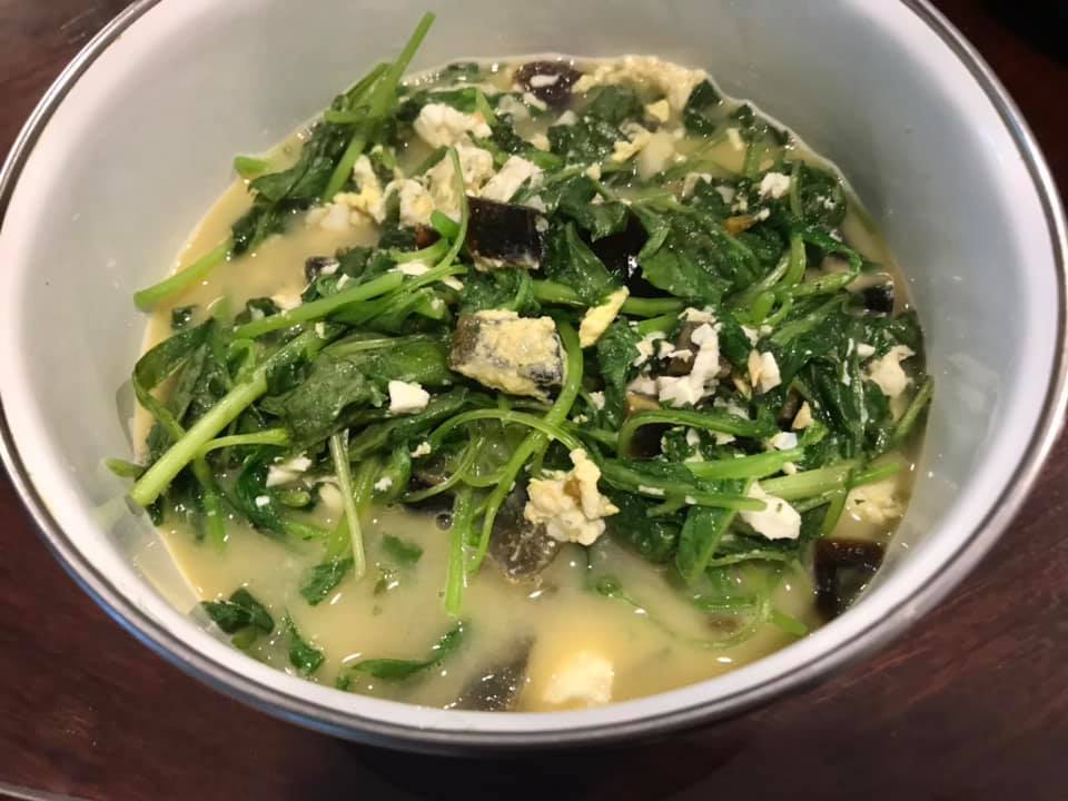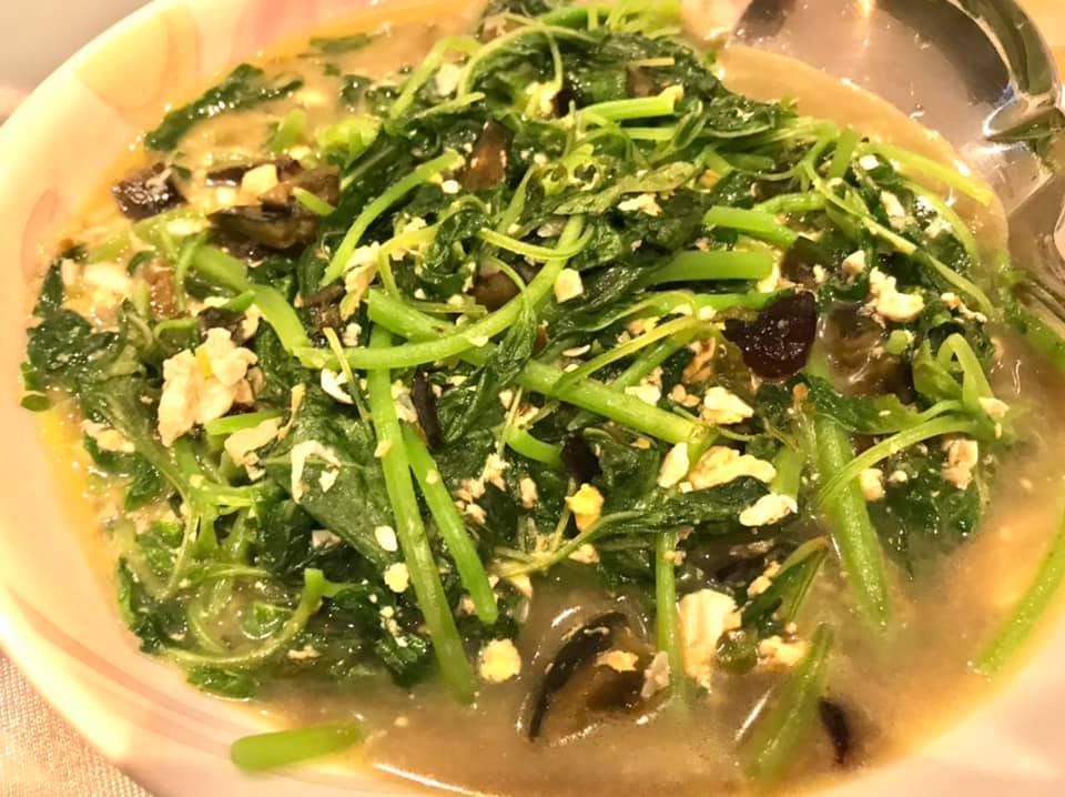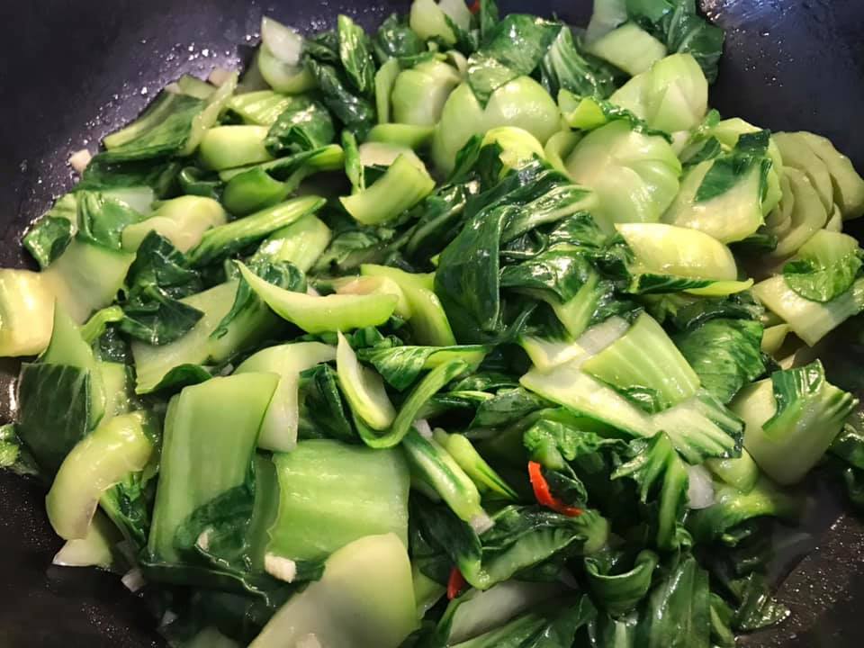 - & aunty bes made stirfried 青龙菜with prawns