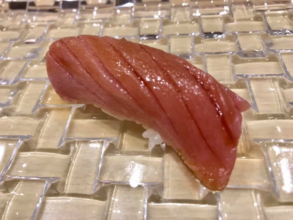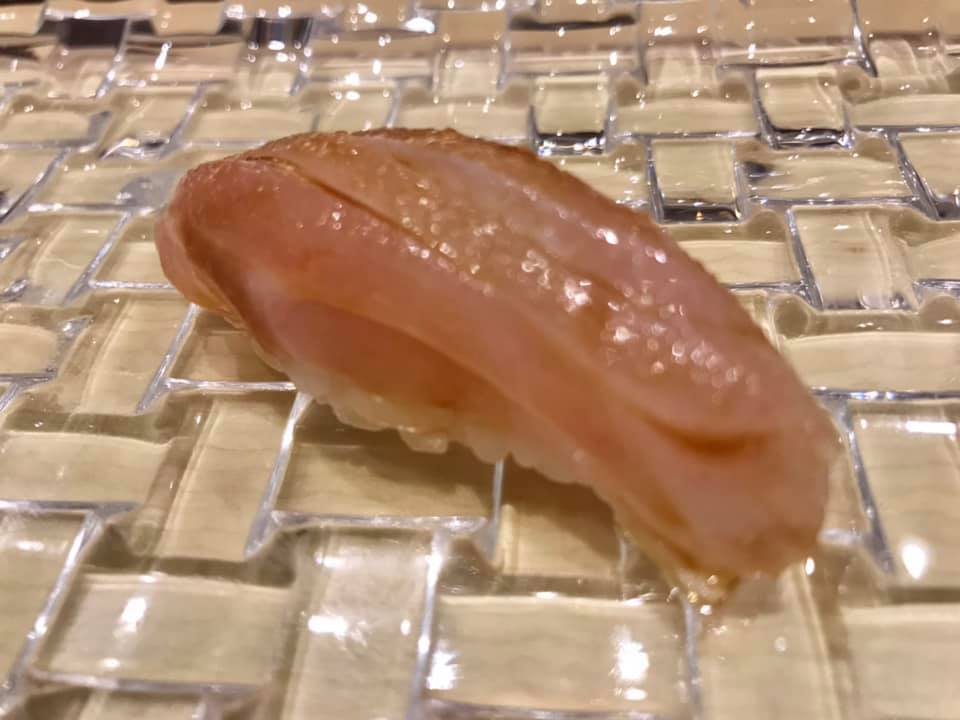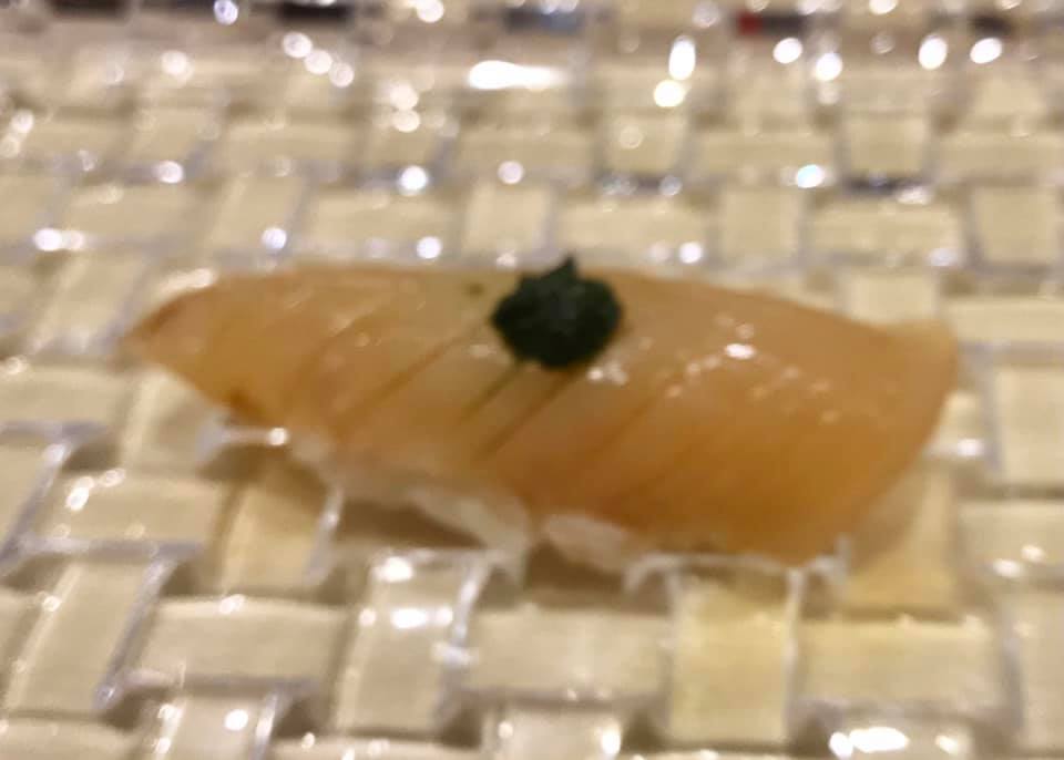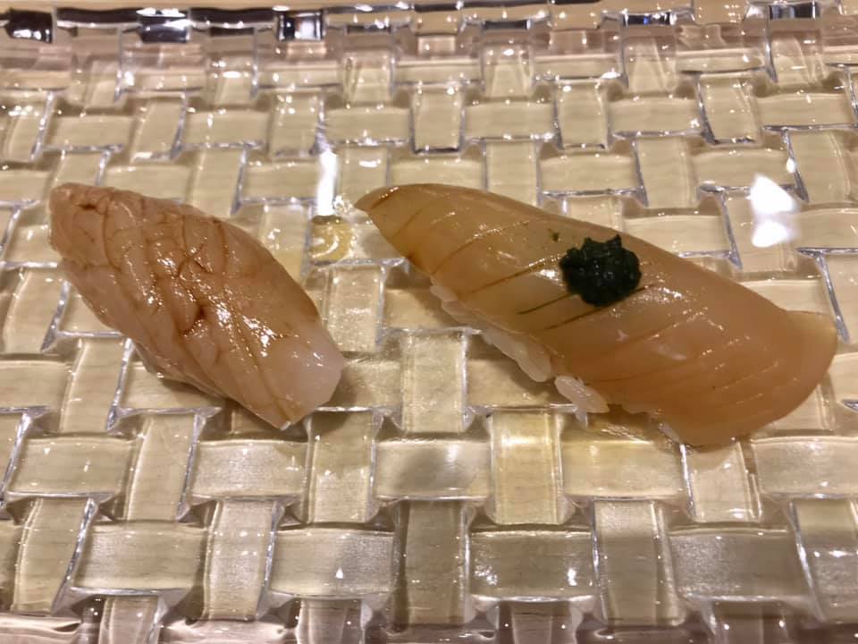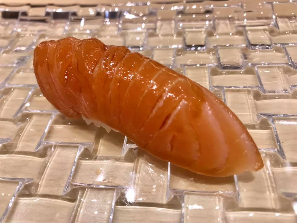 i tried 2 pieces ..one was a complimentary smoked salmon very good indeed another aged spider squid..good too.