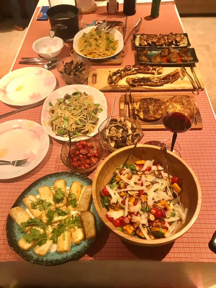 made modern western 11-course all vegetarian dinner for my sis bil, niece 6pax family this evening CNY day 1 on 12.2.2021.