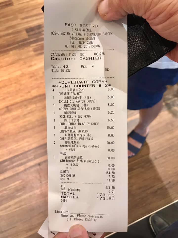 wai mun bought 4pax lunch @ east bistro