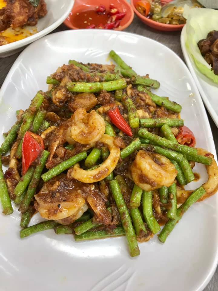 sambal long beans (wanted petai but don’t have) had prawns,squid and chicken..nice just sambal very heavy..