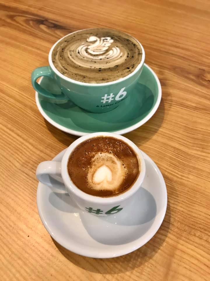 i had piccolo latte & others had charcoal latte flat white etc at 6 letter cafe..